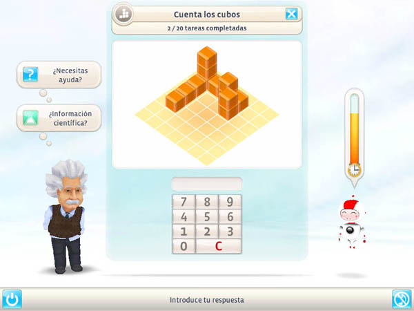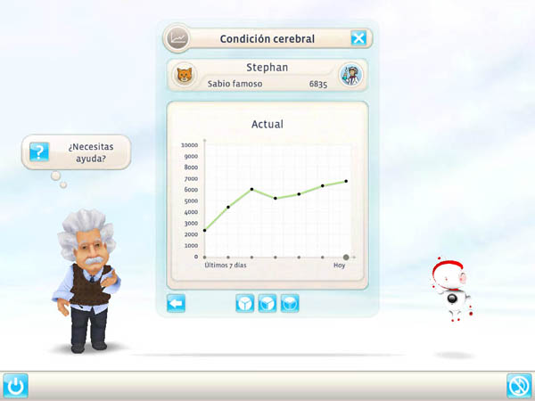 El venerado físico Albert Einstein ofrece su ayuda a los jugadores durante la partida. Einstein les guía en su entrenamiento, les da consejos y los motiva a seguir ejercitando las distintas regiones del cerebro de forma regular. Todas las áreas del juego han sido diseñadas de forma individual con gran creatividad, haciendo que jugar al original entrenador mental sea una experiencia bomba.Añadir Anotación