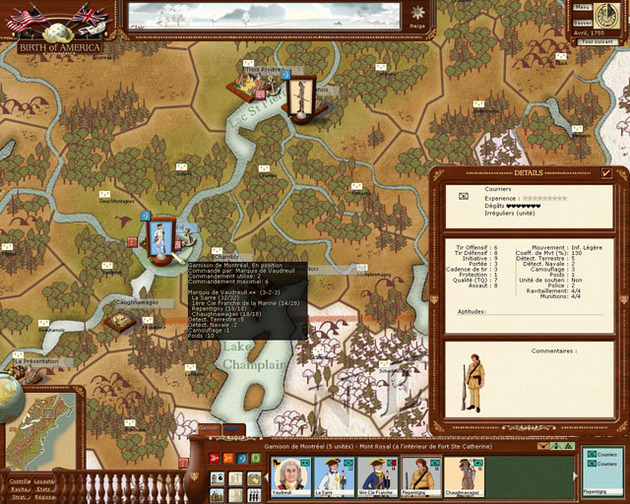 ![]() En Birth of America el jugador controlará uno de los principales bandos de estos dos conflictos, intentando conseguir la Victoria militar y política. Es una simulación bastante completa y detallada de las dos guerras más importantes de la América del Norte colonial desde 1755 a 1783 . El juego cubre todo Norte América desde Florida a Quebec y desde Nueva Inglaterra al Mississipi, desde 1755 a 1783. El mapa del juego está dividido en más de 700 provincias, con una gran diversidad de terreno, climas y niveles de civilización. Los jugadores controlan prácticamente todas las acciones militares de su nación. Esto incluye actividades tales como reclutar y destacar sus ejércitos, construir fuertes y depósitos, asedios y bloqueos, ataques de establecimientos y batallas, tanto por tierra como por mar. Las tropas se controlan a nivel de regimiento. Las unidades navales se controlan a nivel de escuadrones navales y flotillas. También podrás gestionar caravanas de suministros, transporte de agua, fuertes y depósitos. Hay una gran diversidad de tipos de tropas incluyendo: infantería ligera, dragones, artillería de asedio, rangers, soldados indios, marines, milicia, barcos de línea, fragatas y flotillas de lagos. Hay más de 90 modelos diferentes de unidades. Todas ellas afectadas por diversas características tales como fuerza ofensiva y defensiva, moral, experiencia, cualidad de la tropa, origen geográfico y tipo de movimiento. ![]() Se han incluido más de 150 líderes históricos algunos con habilidades únicas tales como capacidad para realizar emboscadas o movimiento acelerado en ciertos entornos. Los aspectos políticos del conflicto (especialmente durante la Guerra de la Independencia) se han tenido en cuenta, afectando a los reclutamientos de la milicia, a las lealtades y al camino final hacia la victoria. CARACTERISTICAS Creado por Philippe Thibaut, autor de Europa Universalis. El mapa más grande de Norte América en el siglo XVIII jamás creado en un juego Más de 90 modelos de unidades de la época fielmente reproducidos Simple e intuitivo Más de 150 líderes históricos con habilidades únicas 11 escenarios y 3 grandes campañas Cuidada inteligencia artificial Opción de jugar por correo electrónico PC CD-ROM Traducido al Castellano Más Información, pantallas e imágenes: www.birth-of-america.com www.friendware.es Foro en Castellano del juego: http://www.ageod.com/forums/forumdisplay.php?f=36 ![]() | |||
